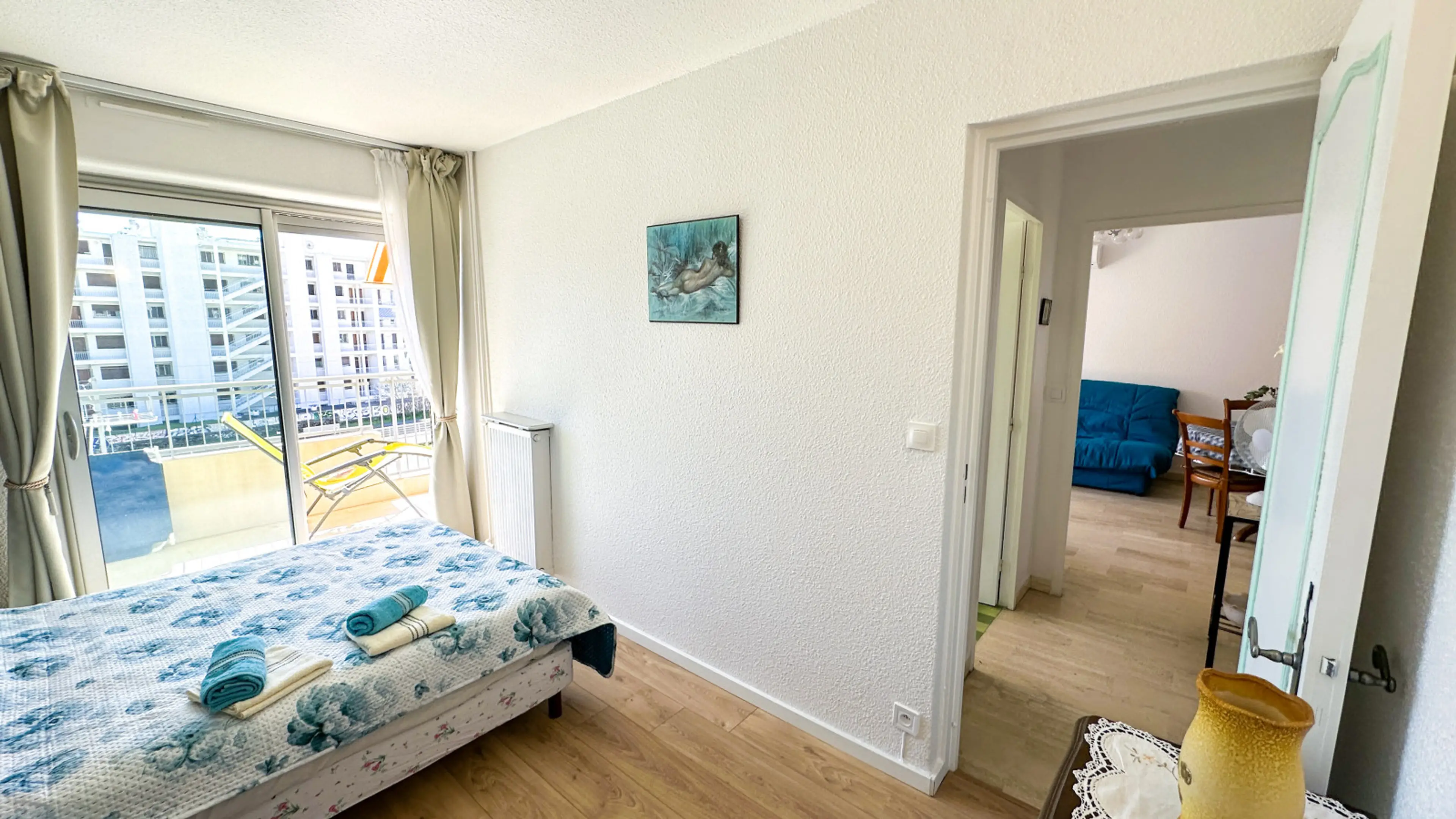 Détendez-vous en famille dans cet appartement de 43m² à Golfe-Juan, à 150m de la plage. Vue mer imprenable depuis le balcon ensoleillé. Parking gratuit devant l’immeuble (côté sud) avec vidéosurveillance ou parking payant à 55€/semaine. Salon lumineux avec canapé-lit, TV et climatisation. Chambre cl...